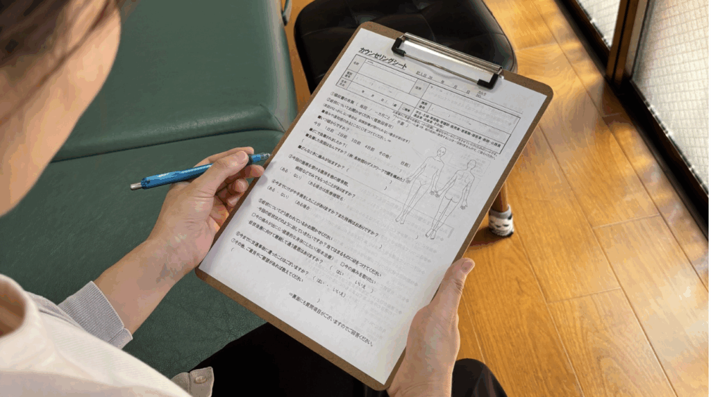 治療の最後に今後の治療ペースなどを改めてご説明した後に次回のご予約をおとりいただき、治療終了となります。